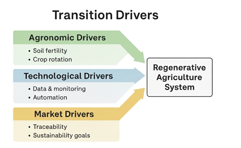 Regenerative systems deliver tangible benefits: higher organic matter, improved water retention, reduced reliance on fertilizers and pesticides, stronger biodiversity, and in some markets, premium prices. But this transition is not immediate. Moving from conventional to regenerative farming is a gradual process that requires planning, patience, and investment.